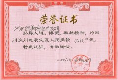 汶川地震捐助榮譽(yù)證書