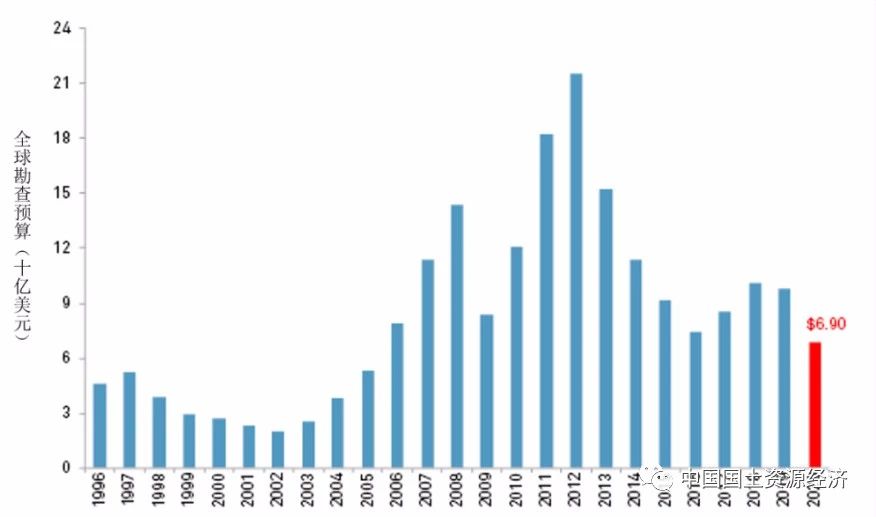 圖1 1996—2020年全球勘查預(yù)算變化情況
