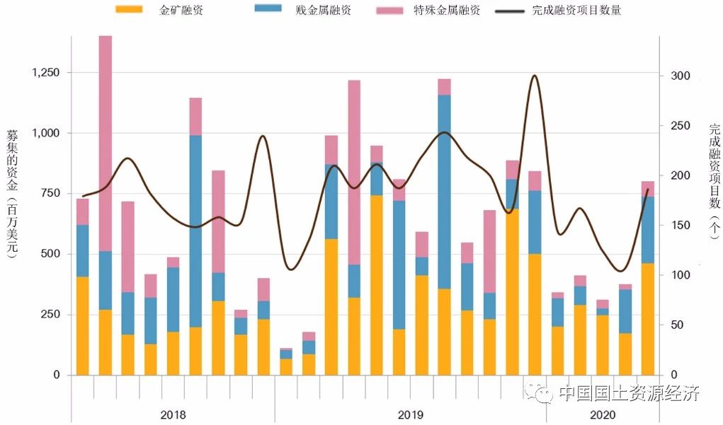 圖4 2018年5月—2020年5月初級和中級勘查公司融資情況