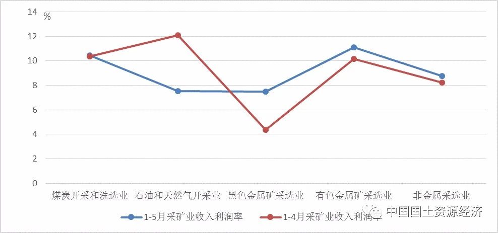 我國1—5月采礦業(yè)盈利水平趨弱。國家統(tǒng)計(jì)局最新發(fā)布的工業(yè)企業(yè)利潤數(shù)據(jù)顯示,2020年1—5月,規(guī)模以上工業(yè)企業(yè)營業(yè)收入利潤率為5%。其中,采礦業(yè)營業(yè)收入利潤率為8.95%,較1—4月下降0.74個(gè)百分點(diǎn),遠(yuǎn)低于2019年同期水平(2019年1—5月采礦業(yè)營業(yè)收入利潤率為12.88%)。從采礦業(yè)細(xì)分行業(yè)來看,除石油和天然氣開采業(yè)盈利水平繼續(xù)下降外,其他細(xì)分行業(yè)利潤均有所改善,盈利水平均有較小幅度的增長。(參見圖5)